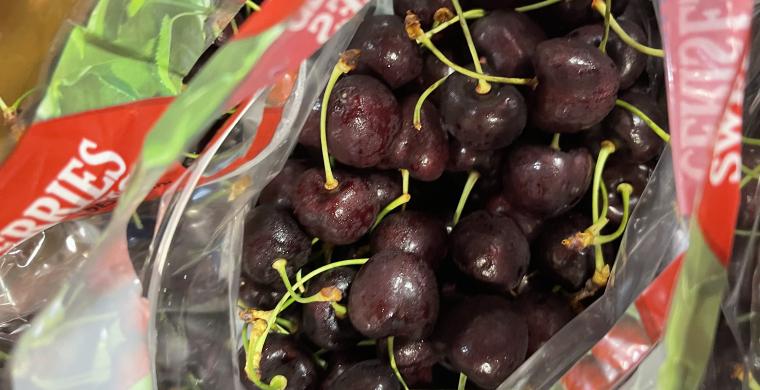 Store #100 met produce manager Luke. Small section of cherries quality showed some pitting competitive items seedless watermelon 7.99, conventional straws, blues, rasp,and blues ALL 2/7.00.